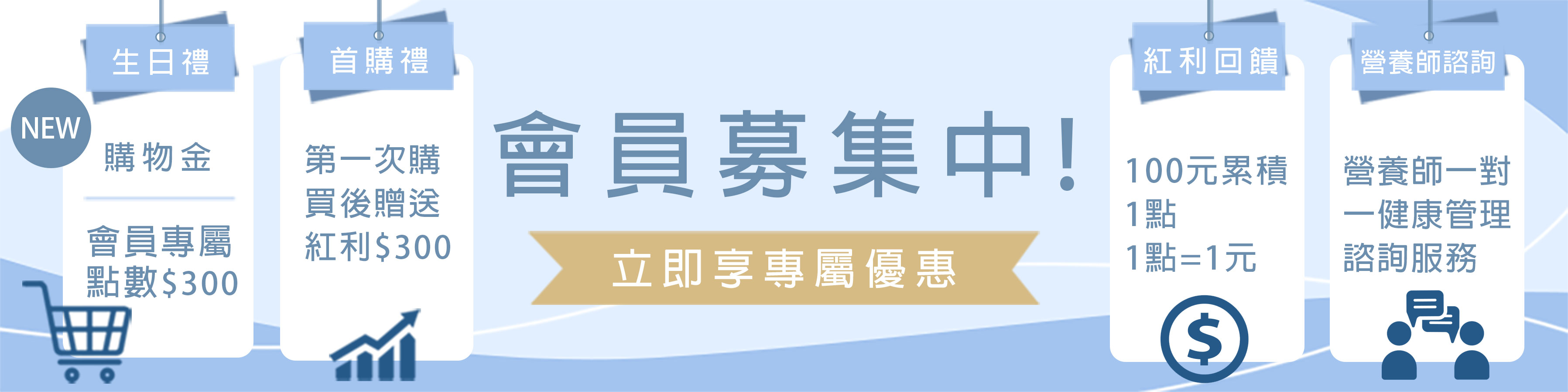首次成為會員,下單付款成功後,贈送 NT$300 購物金